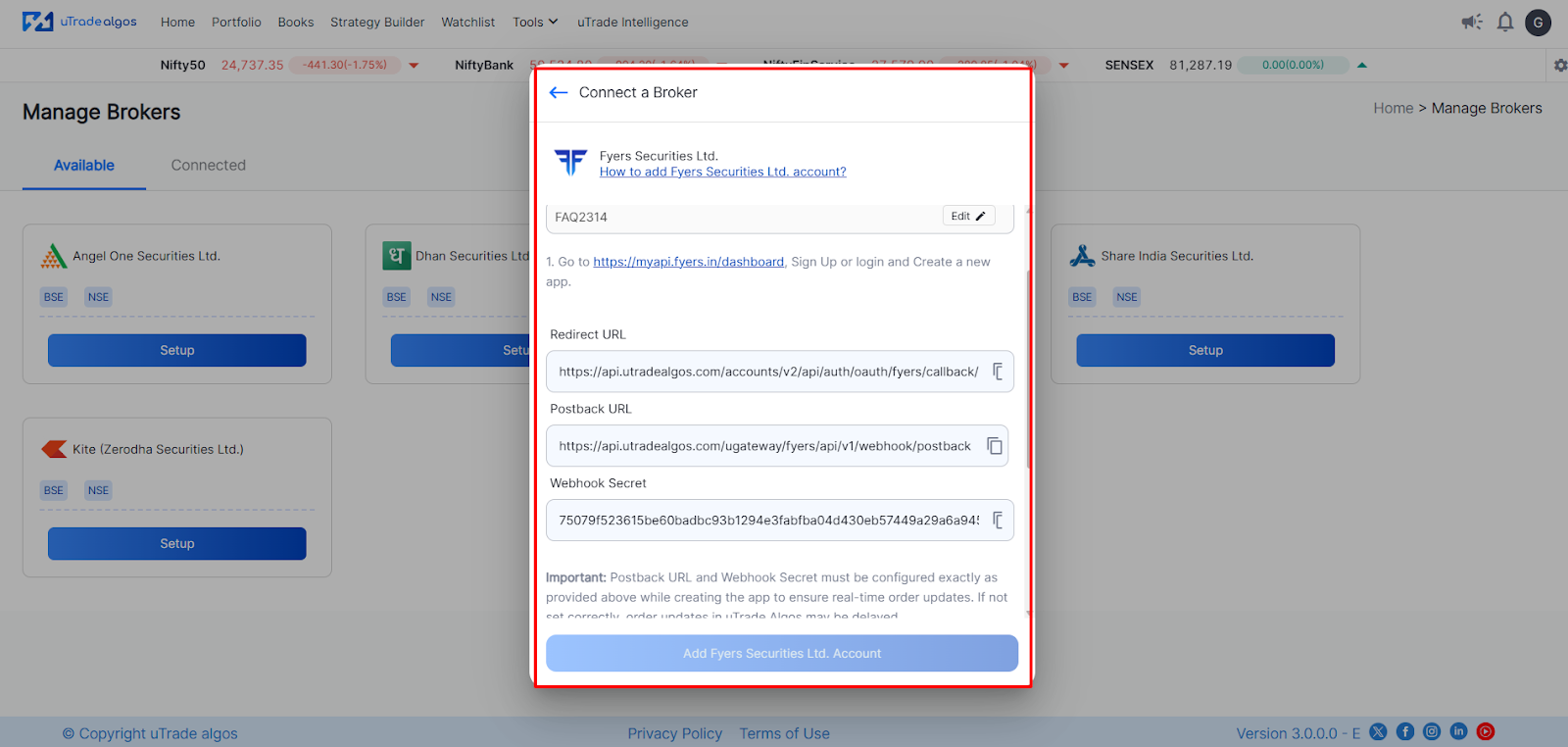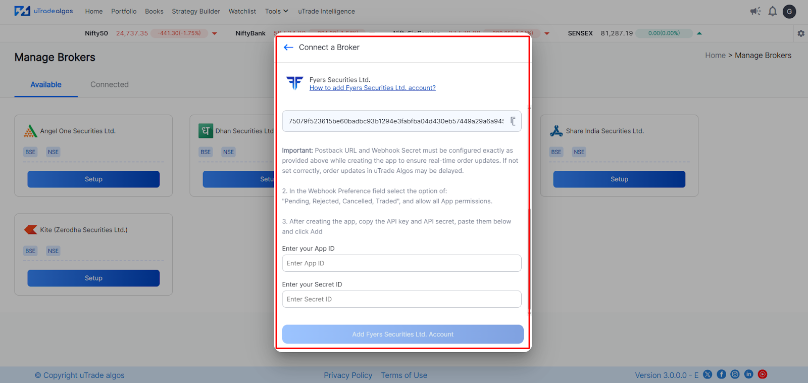 Step-by-Step: Connecting Fyers to uTrade Algos