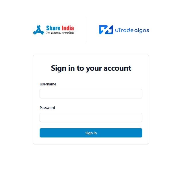After clicking the “Add Zerodha Securities Ltd Account” button, you will be redirected to the Zerodha web login page, where you will be asked to enter your login credentials. Once the authentication is complete, you will be redirected back to your UtradeAlgos account. Your Zerodha account will now be successfully linked with UtradeAlgos and will appear under the Connected section in Manage Broker.