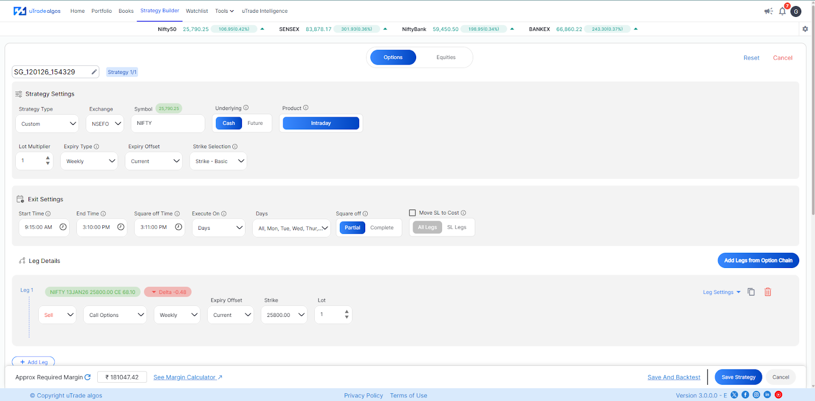- The screen is accessed from the ‘Create Portfolio’ section once the user gives the inputs of the strategies and exit parameters for a portfolio. So you can create and save strategies and while reviewing also gauge the margin requirements for the strategy you’ve just created.