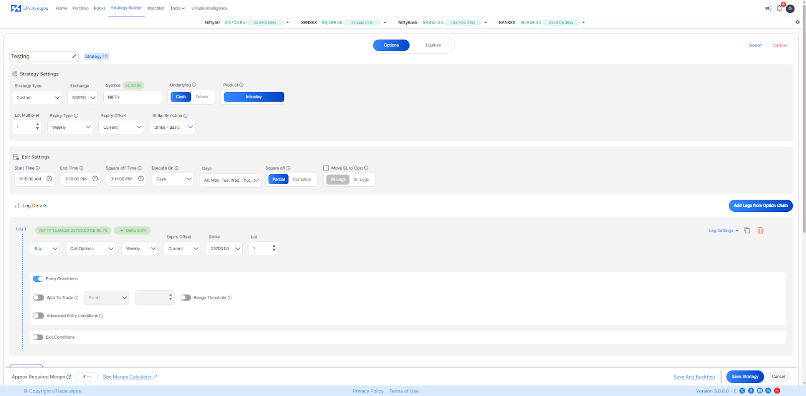 uTrade Algos offers a simplistic yet powerful order form that comes with intuitive easy-to-use options, such as Strategy Templates for Options Strategies using which the user can deploy over 9 strategies in just a click. Along with that, the user can use powerful options to make the strategy creation process smarter by using: